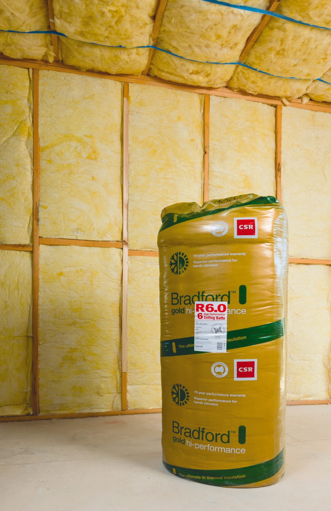 Bradford Gold Ceiling Perimeter Batts are suitable for all construction types where space is a premium and obtain all the standard convenient features of the Bradford Gold Hi-Performance range. Australian-made, non-combustible and low allergen, they hold their thickness over time and are supported by CSR Bradford technical advice and a 70-year performance warranty.