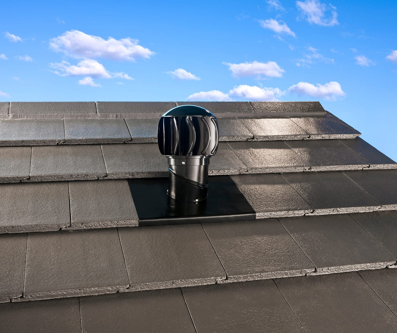 TurboVentura is available as a single black model for small-area ventilation: 150 mm opening with roof flashings to suit metal or tiled roofs. For effective airflow, use eave vents with each unit.